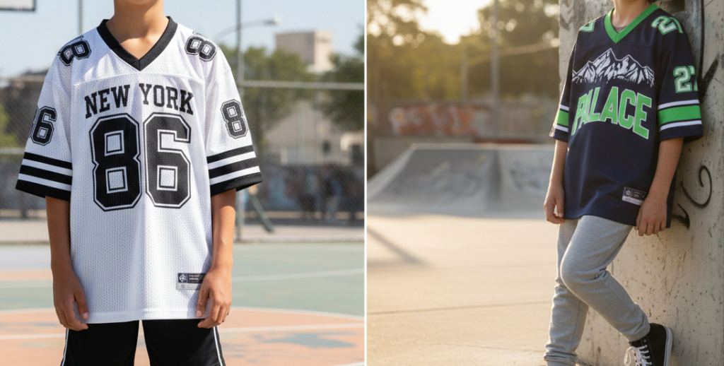 חולצות רוגבי, ג’רזי ספורטיבי ואלמנטים מעולם הספורט ממשיכים להתחזק, בעיקר כשזה מגיע עם גזרה נוחה וגרפיקה ברורה.